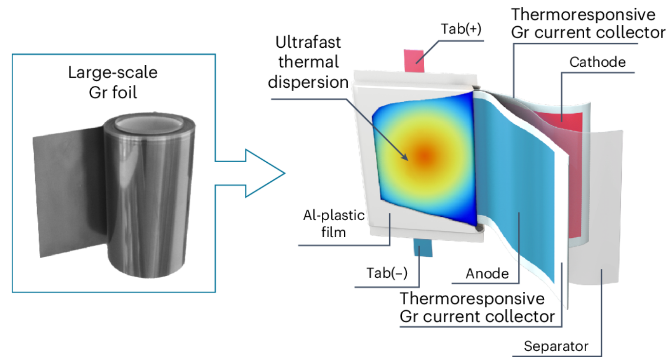 - 새로운 그래핀 포일은 열을 더 효과적으로 방출하도록 설계되어 열 폭주의 가능성을 줄인다.